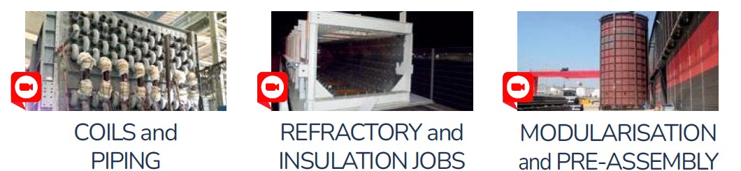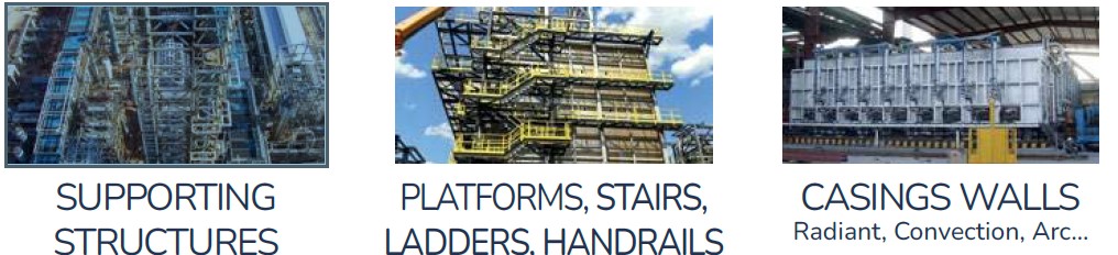 Steel heaters, piping, spools, ducts, tanks, furnaces, breeching, stacks, platforms